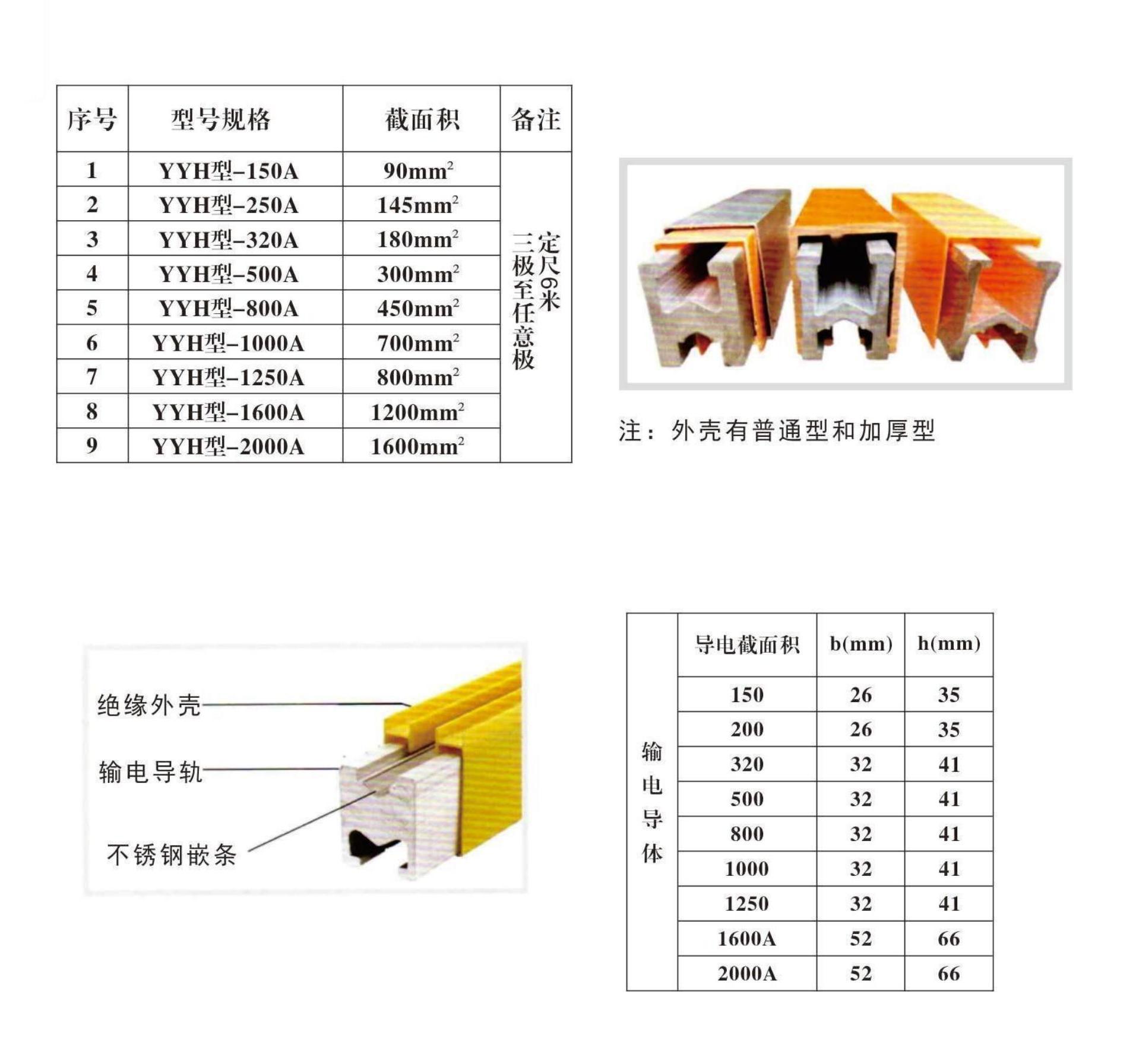YYH型單極組合式安全滑觸線由鋁合金制成,載流量大、電壓降小,在鋁導軌和電刷摩擦部位,采用耐磨性能好的不銹鋼嵌條,確保移動導向和有效使用壽命,廣泛適用于各類大噸位門吊、橋吊、裝卸集裝箱吊機等機械設備的移動供電。